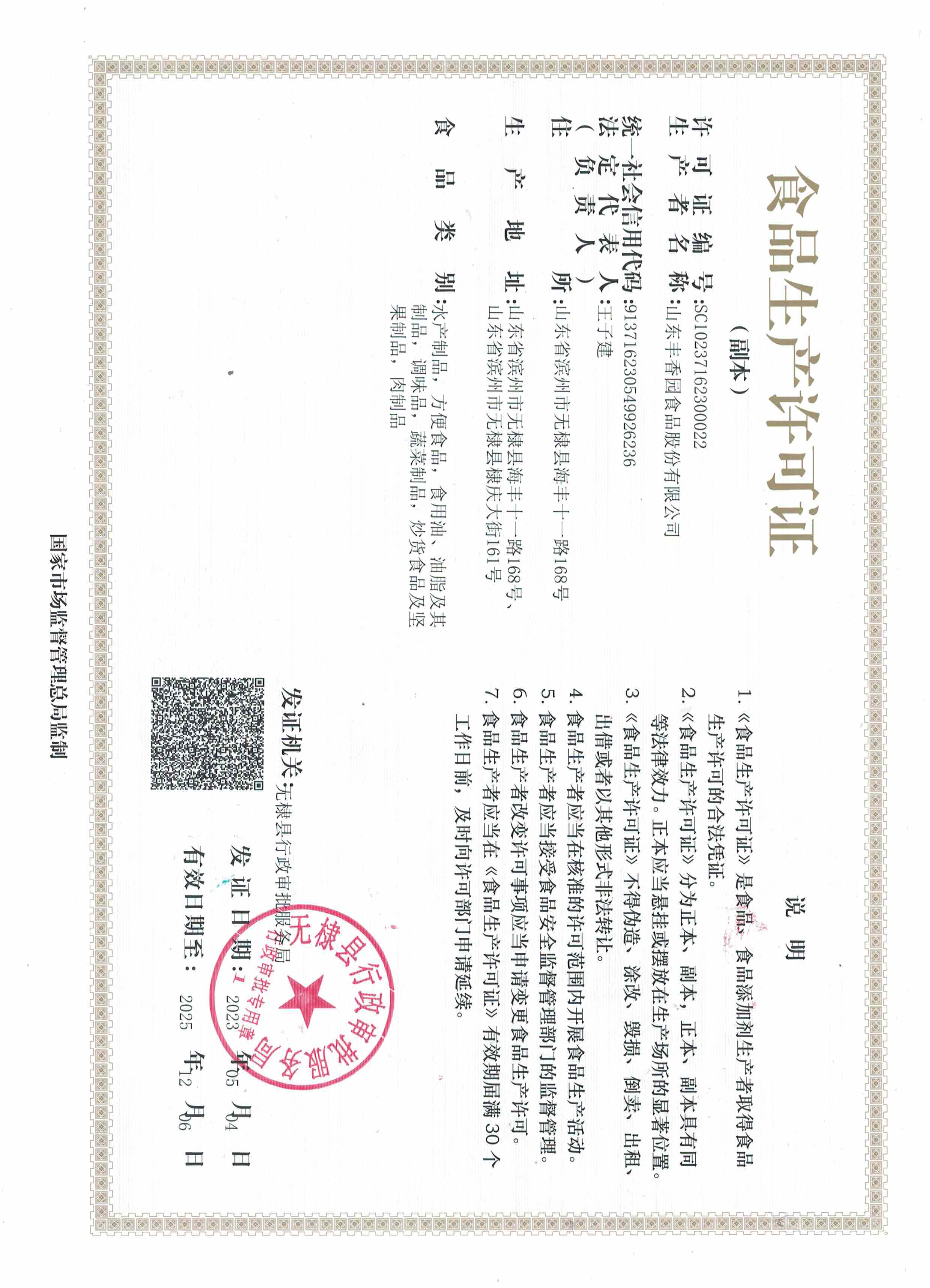 • 山東豐香園食品股份有限公司食品生產(chǎn)企業(yè)食品安全承諾書